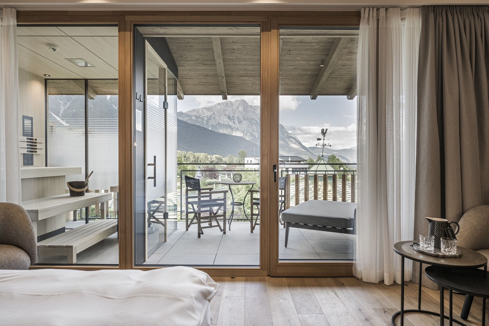 35 m², unsere neuesten Zimmer, in der obersten Etage, mit Sauna am Balkon